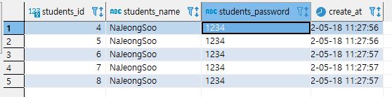 위와 같이 data가 다시 잘 INSERT된 것을 볼 수 있다!